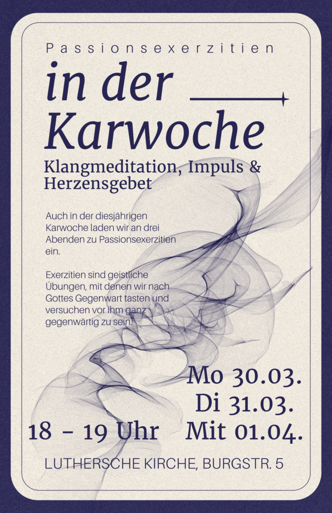 Auch in der diesjährigen Karwoche laden wir an drei Abenden zu Passions-Exerzitien ein. Exerzitien sind...