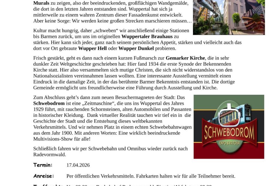 Es ist vollbracht. Nun ist es soweit und wir sind eine neue Gemeinde: Seit dem 01.01.2026 sind wir die Evangelische Kirchengemeinde Radevormwald. Die Homepage ist neu gestaltet. Sollten irgendwo noch Fehler zu finden sein, freuen wir uns über einen kurzen Hinweis. Auch ein neues Gemeindelogo gibt es nun: Es nimmt auf, wo wir gerade stehen: Wir sind nun eine große Gemeinde von der Wupper bis zur Innenstadt auf der Höhe. Zwischen unseren Kirchengebäuden begegnen wir uns in unserem vielfältigen… Weiterlesen »Evangelische Kirchengemeinde Radevormwald